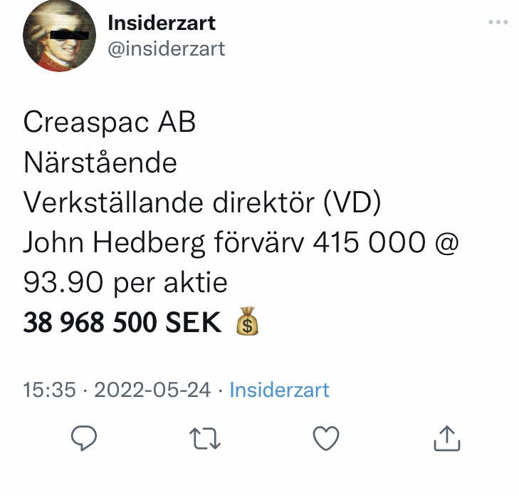 Creades ska etablera en SPAC med första handelsdag i slutet på Juni, vad har ni för tankar kring det?