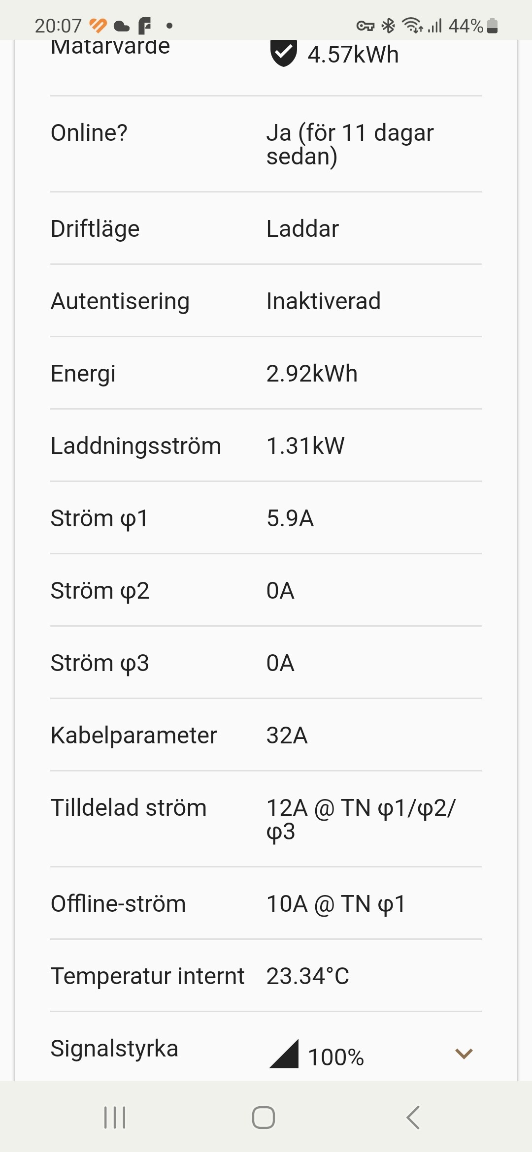 Offline är nog den fallback ström laddboxen går ner till om den tappar kontakten med lastbalanseringen. Jag kan tycka att det är i högsta laget att sätta den på 10A. 6-8A är mera vettigt…