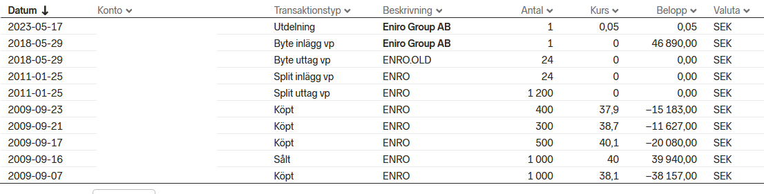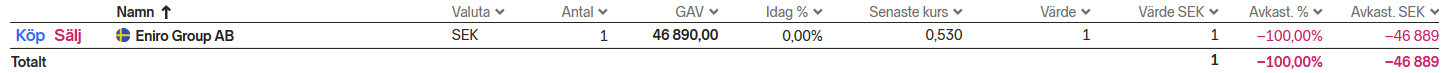 Jag har bifogat ett par bilder på hur posten ser ut på kontot just nu och transaktionerna för aktien. Är det så enkelt att jag kan sätta en förlust på 46889kr eller har jag missförstått det totalt och missat chansen med alla splittar och dyligt de pysslat med som jag kört huvudet i sanden på och ignorerat?