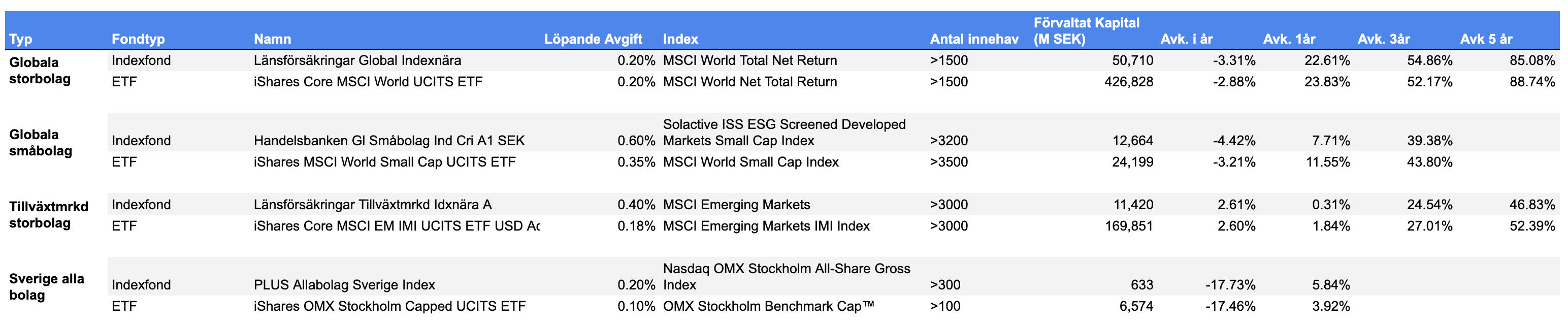 Jämförde du 30 global index fonder mot 30 globalindex-etf-er så var du en bit på väg.