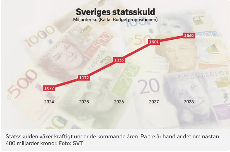 Statsskulden växer kraftigt under de kommande åren. På tre år handlar det om nästan 400 miljarder kronor.