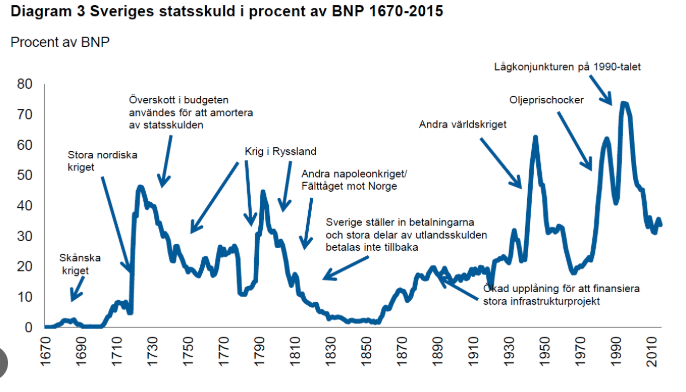Sverige har väl även efter ökningen en av Europas lägsta stadsskulder sett till BNP. Går det åt skogen kanske vi kan göra som Sverige gjorde på 1820-talet.