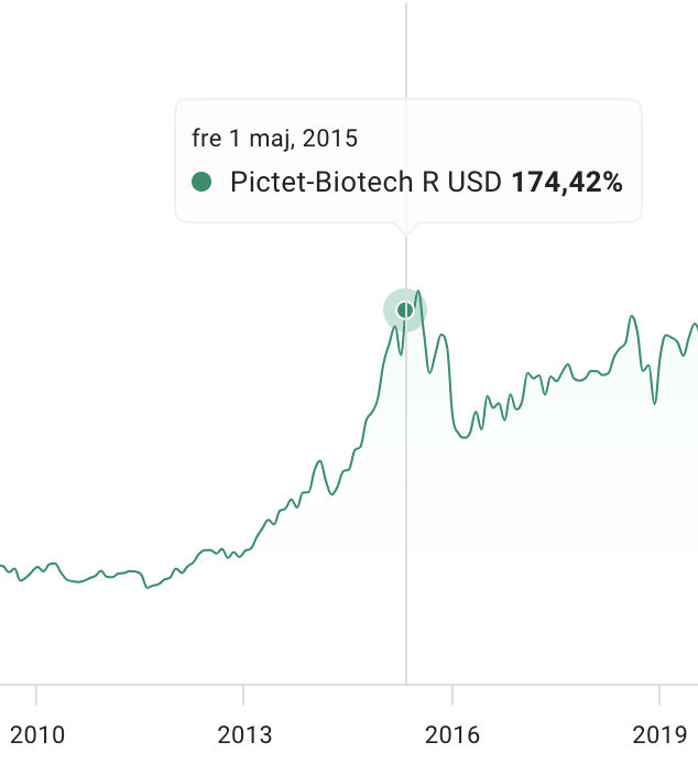 Han rekommenderade mig, utöver några av Swedbanks egna indexfonder att jag skulle satsa på Pictet Biotech.