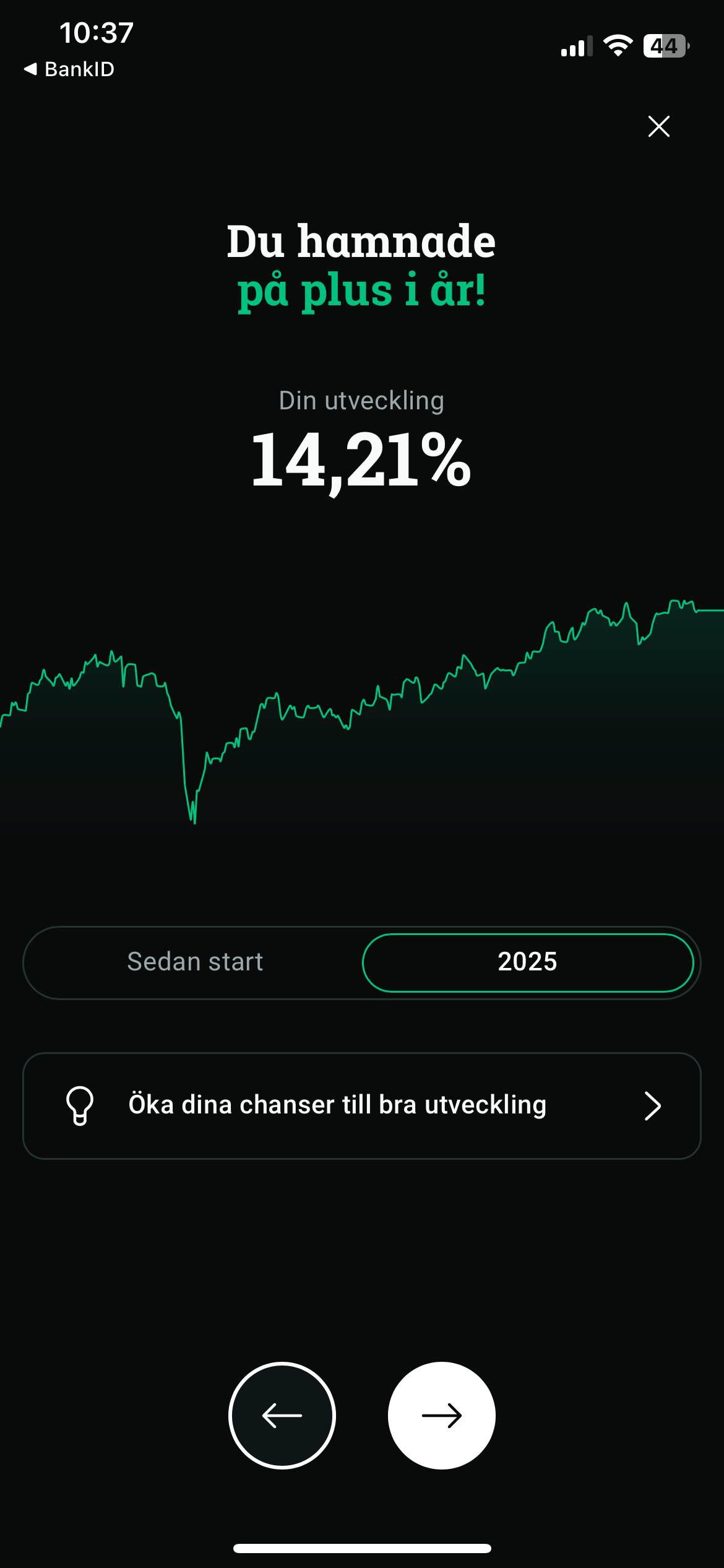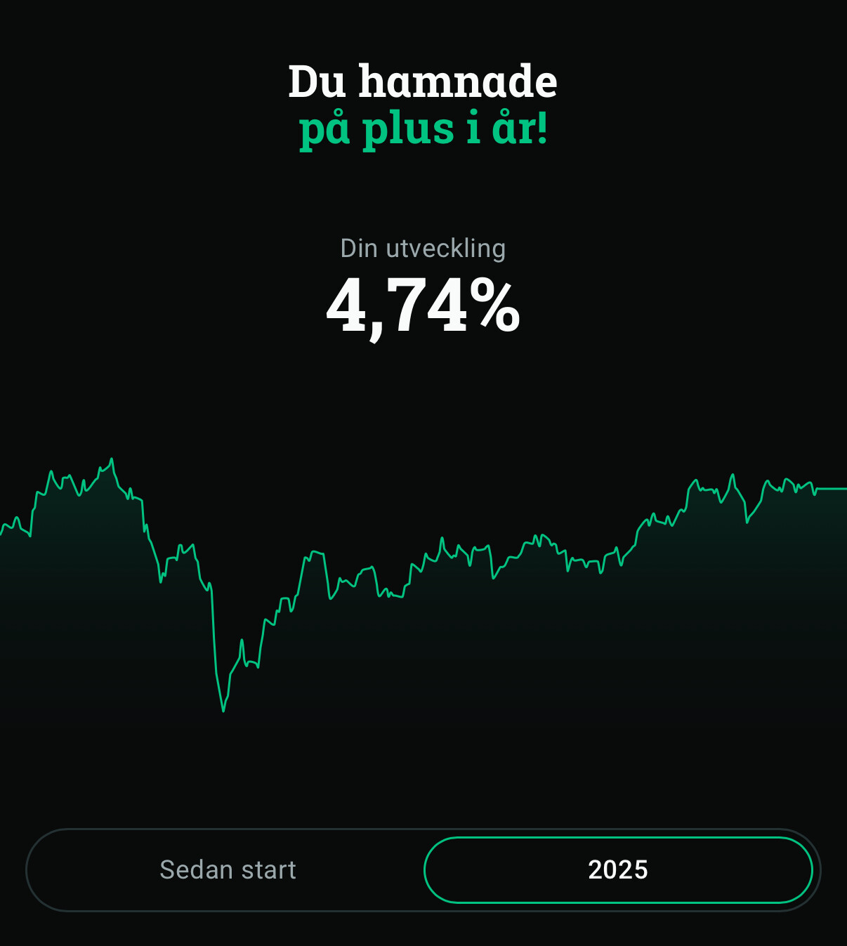 I USD ligger jag ca 18% plus.
