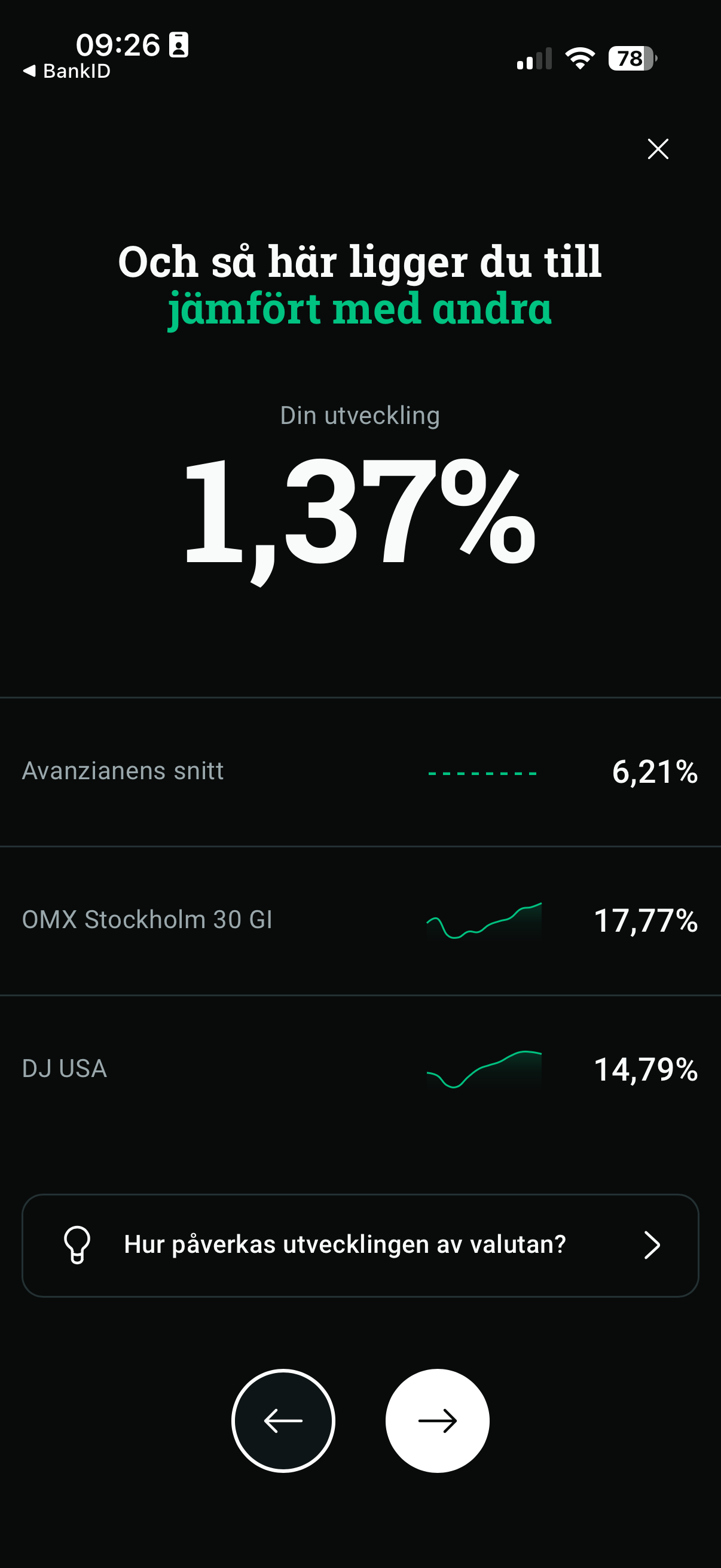 Men i sek så ligger jag ca 1.5% plus.