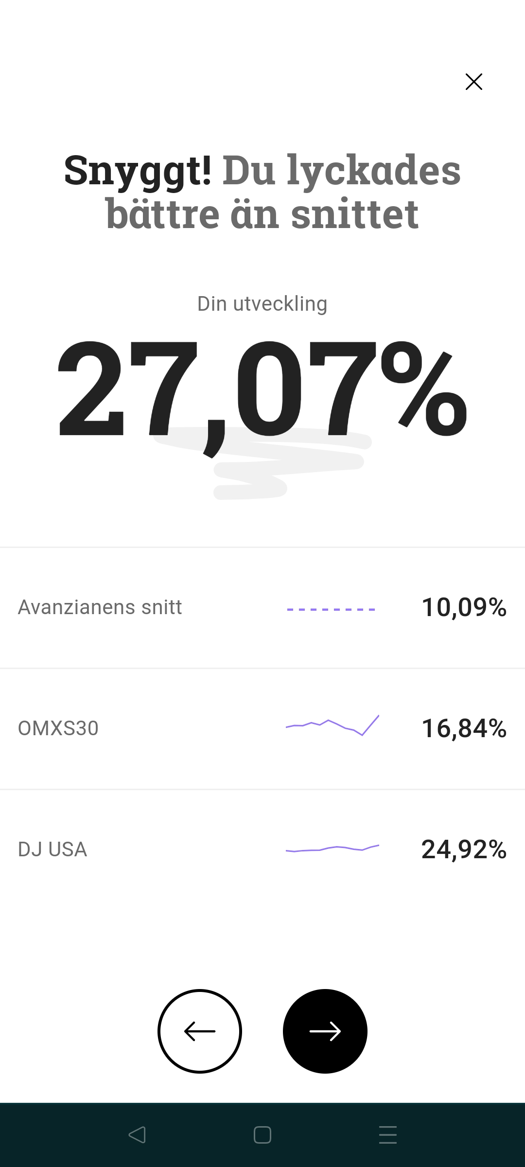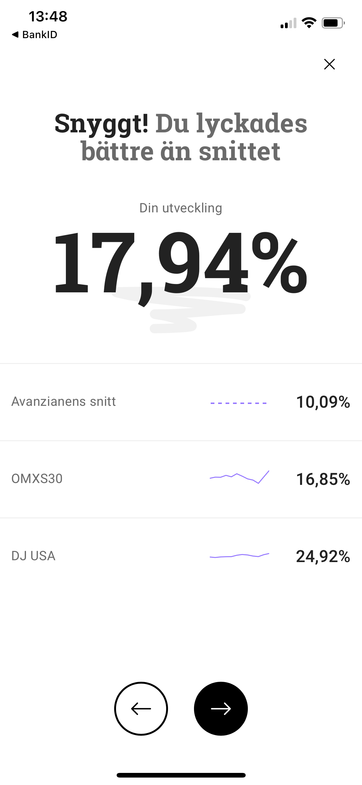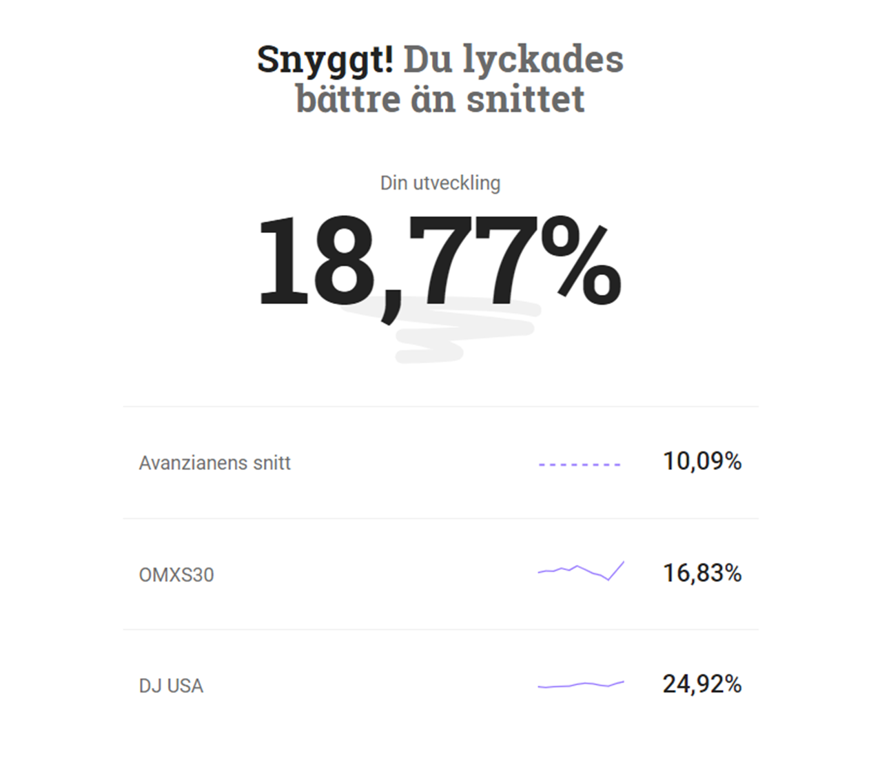 Avanza räknar dock med nettoinsättningar i total värdeförändring och inte bara avkastning.