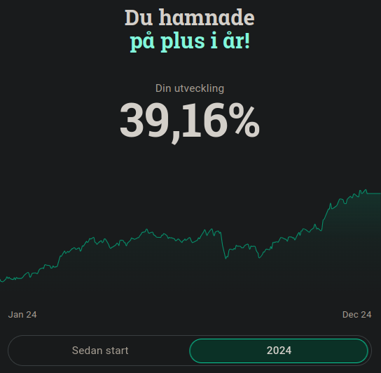 Lekhinken +15.3% och indexportföljen +25.1% i år. Är hyffsat nöjd ändå ![]()