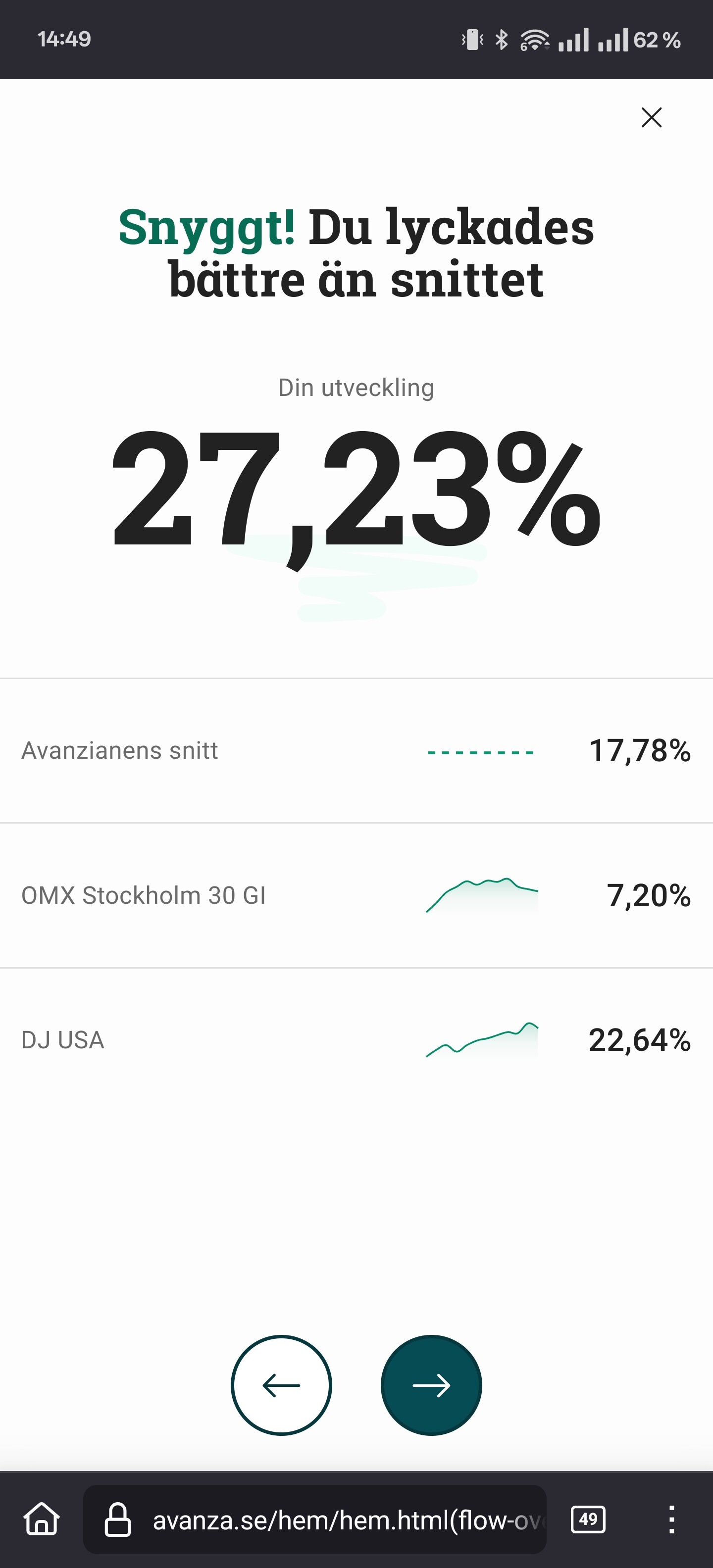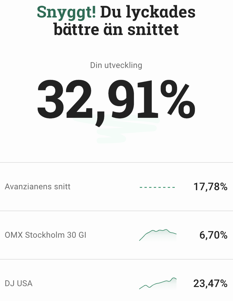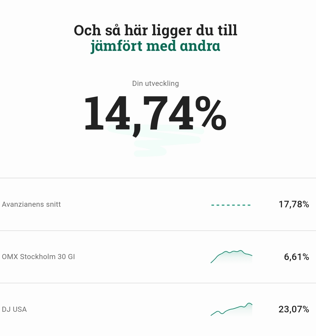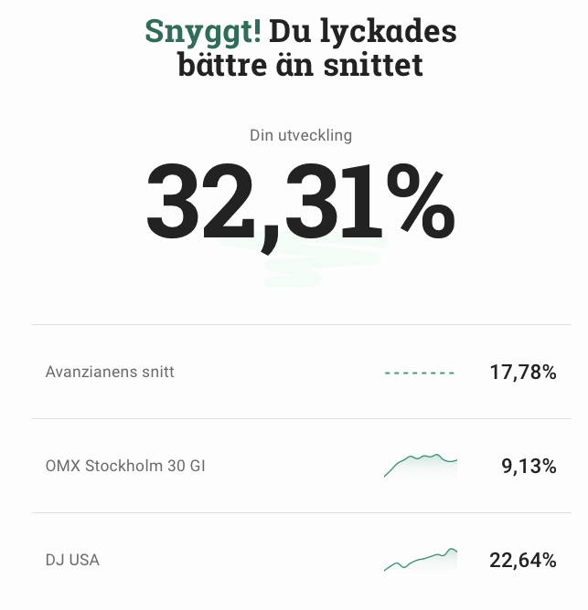 Men jag upplever att avanzas sammanfattning är dåligt för nya konton. Börjar jag året med 100 kr. Går 100% upp första halvåret.