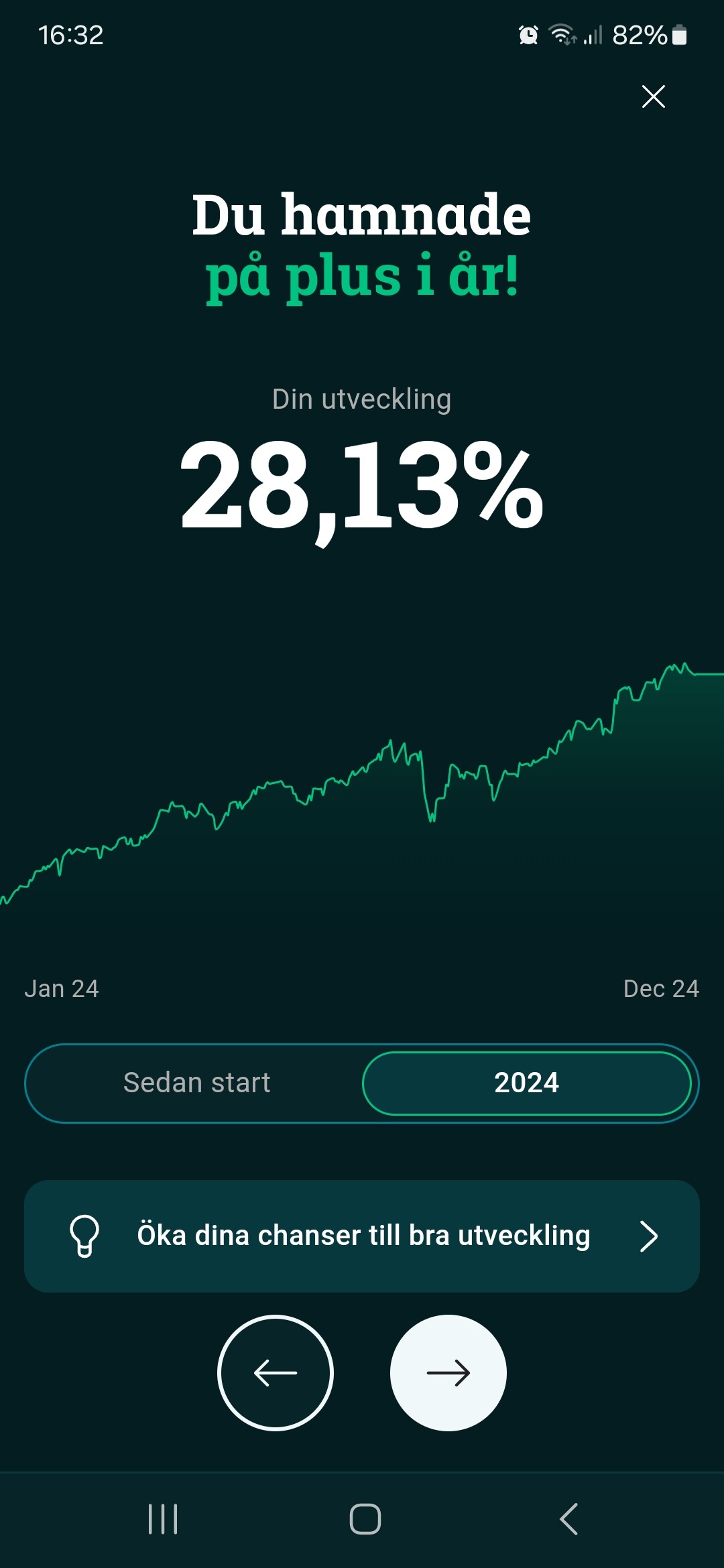 Jag är nöjd. Och då sålde jag ändå av 200k i somras för bilköp.