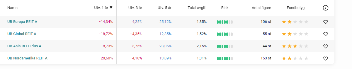 Fastigheter är ett annat sätt men känns också rätt klurigt att göra på ett enkelt sätt. Vet att en del investerar i REITS men har inte satt mig in i hur det fungerar. Tessin eller fastighetsaktiefonder är även alternativ men är inte helt hundra på ifall det är ett bra alternativ.