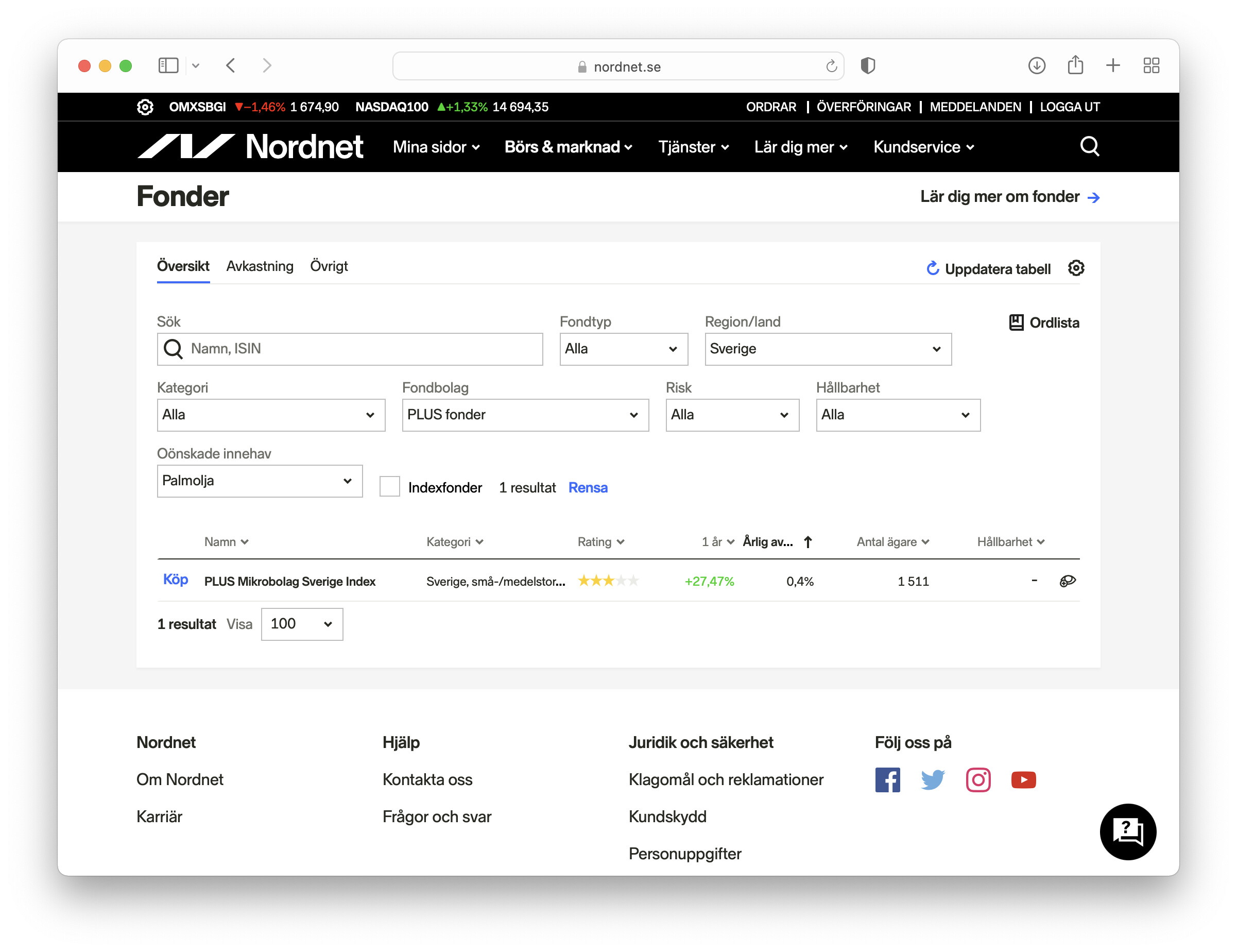 Dock vet jag att Plus AllaBolag Sverige t.ex. innehåller exponering mot palmolja. Vilket man kan se om man går till fondlistan: