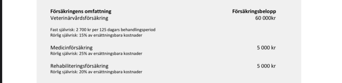 Jag tycker det är självklart att försäkra djur precis som barn… men 300kr/mån låter vansinnigt, jag tecknade för vår lilla katt i måndags - 1200 kr/år… Villkor enl bild…