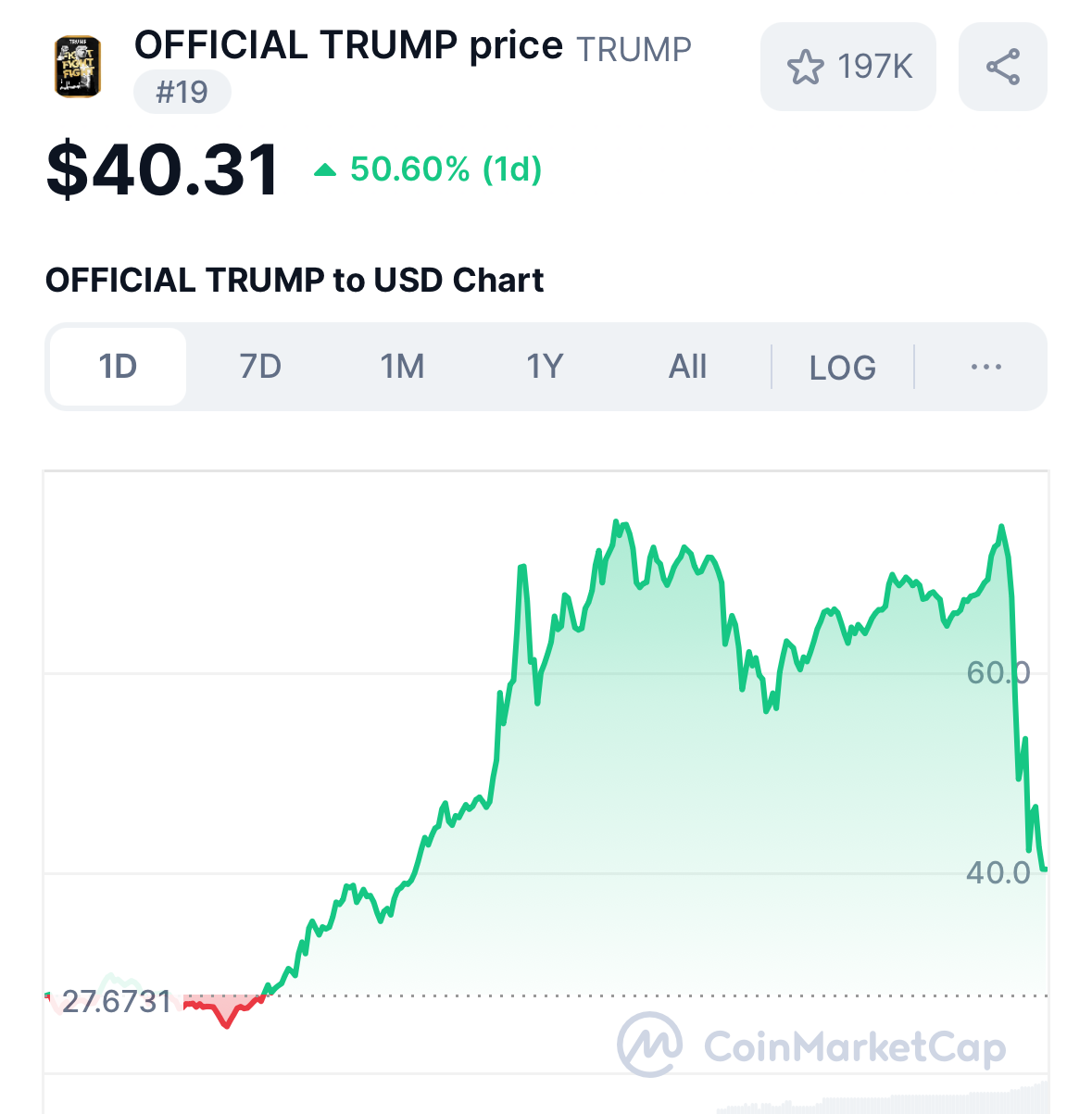@angaudlinn Den där grafen har väl inget med Trumps meme-coin att göra? Den är fortfarande upp 450%.