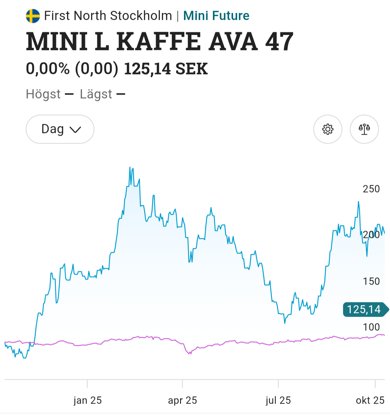 Men för att svara på frågan. Många investeringsinstitut ger ut en hel uppsjö av mini futures med olika underliggande och med ett brett spann av olika hävstänget. BNP Paribas är stora, men de ges ut av flera olika banker och kan köpas överallt. S&P 500 lär vara en av de vanligaste underliggande. För den som inte är riskavert kan man tillexempel gissa på kaffets prisutveckling. Gemensamt för alla är att utvecklingskurvan för OMXS30 ser ut som ett rakt streck i jämförelse…