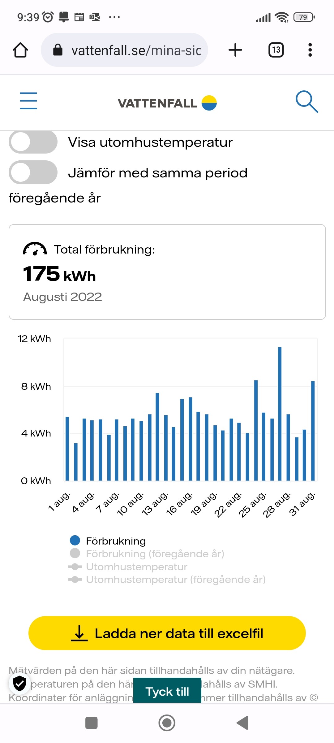 194 kwh kostade 1000 kr i Augusti