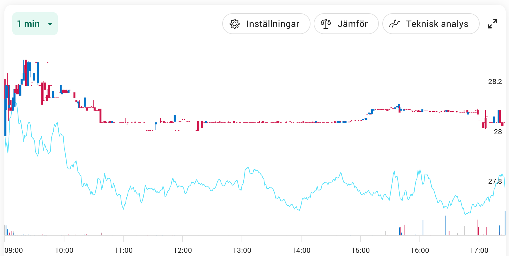 Ja, massa röda små staplar i Candlestick-grafen med 28,05 på undersidan visar att det pågick stödköp.