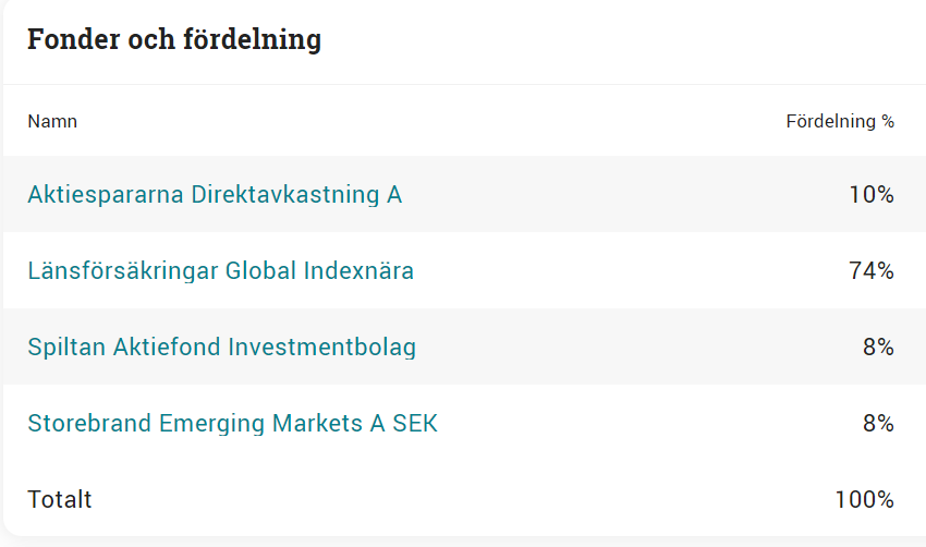 Som med mycket är fonder och sparande något jag gärna skulle vilja grotta ner mig i mer och erhålla en kunskap där jag känner mig handlingskraftig och har tillit kring mina val - dock så är fokus kring arbete och vardagen prio i dagsläget så jag söker efter en lösning där jag kan koppla bort en alltför stor tillsyn och tid.