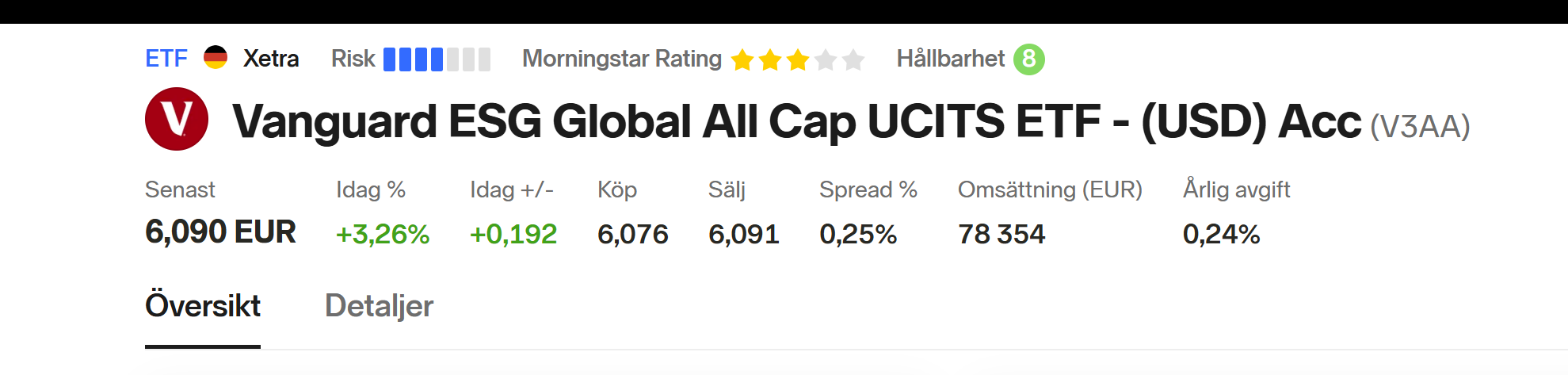 Eller så struntar du i månadssparande och tar Vanguard’s utmärkta globalfond med ESG och får All-Cap och utvecklingsmarknader på köpet: