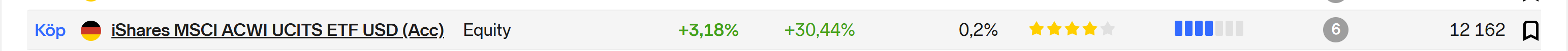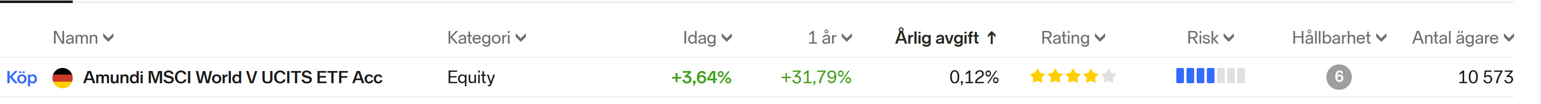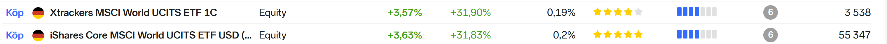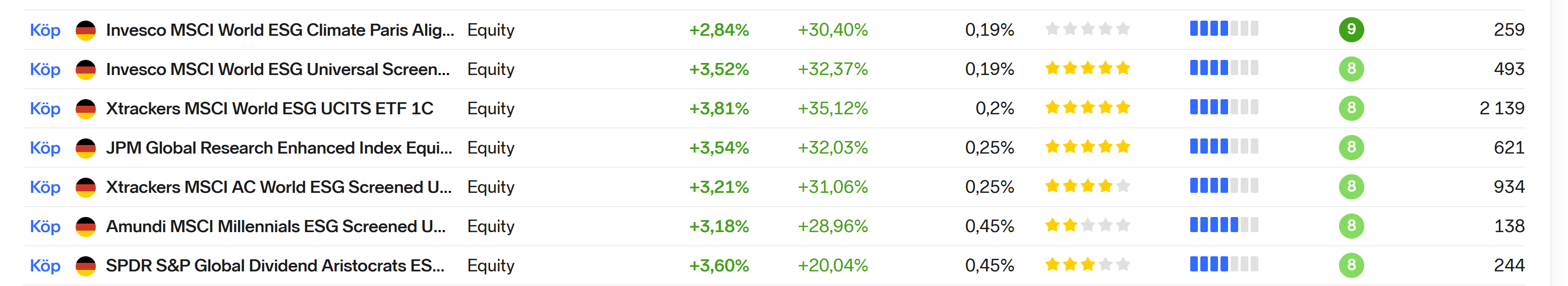 Dessa ovan har inga ESG kriterier så ifall detta är viktigt får du hitta en lämplig global-ETF utan utvecklingsmarknader som har ESG som mål - då blir det att kolla efter nedan lista i så fall: