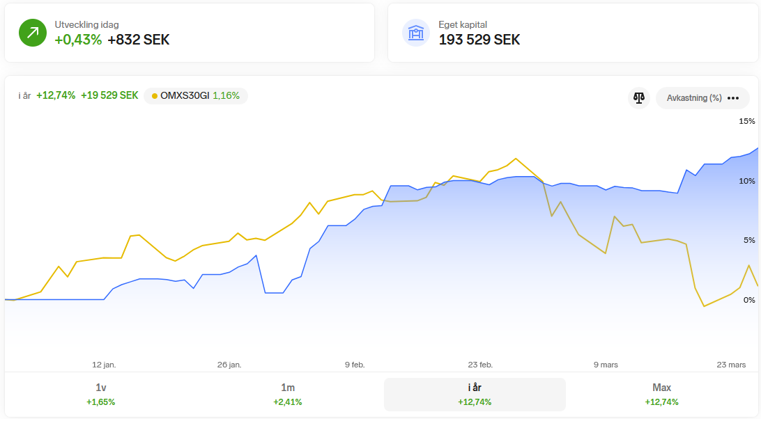 Mål: Få mer avkastning under 2026 än vad motsvarande fastränta skulle gett. (5520:- innan skatt). Mer är så klart bättre men ingen nödvändighet.