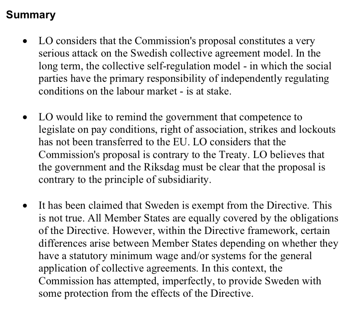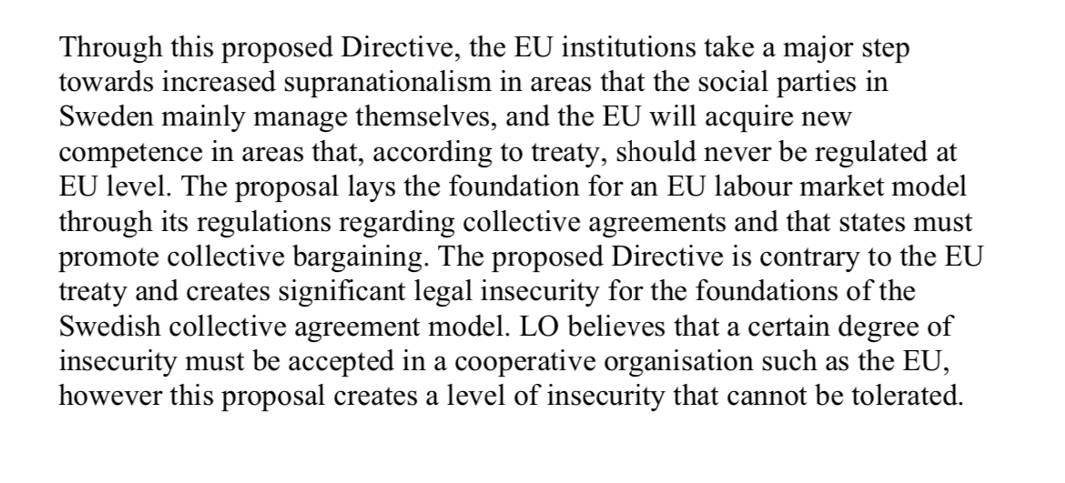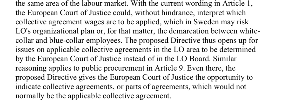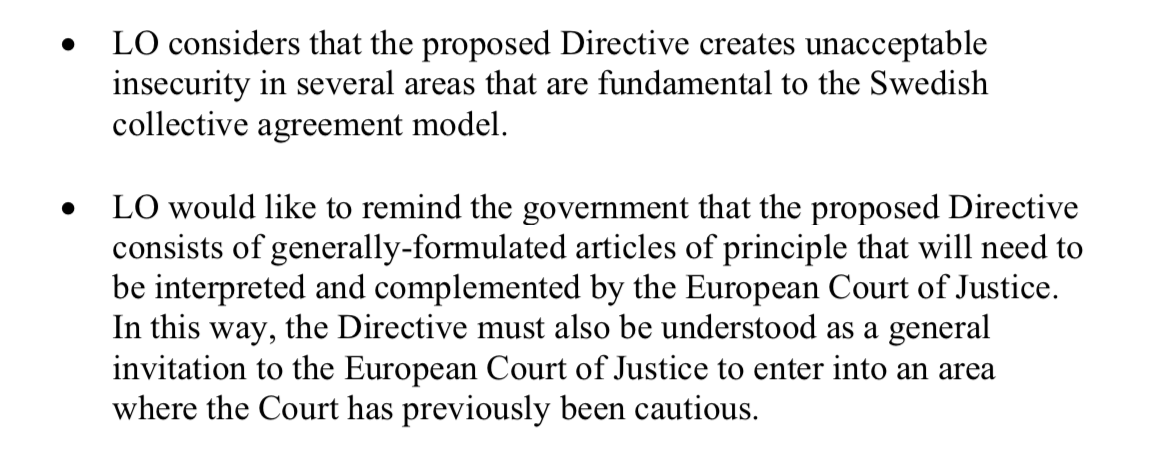 Så är det säkert. De är allmänt nojiga över all typ av EU-reglering som skulle kunna påverka förhandlingsutrymmet gällande kollektivavtalen. Om arbetsgivarna hypotetiskt i framtiden skulle ha intresse av en viss förändring kan den ju användas som förhandlingspjäs för att få igenom fördelar av något helt annat slag. Det gäller även om förändringen i grunden är helt neutral för arbetstagarsidan. Det här med förhandlingar om alla sorters teknikaliteter är LO:s hemmaplan.