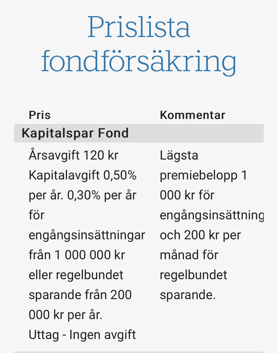 Det stämmer att Handelsbanken har skalavgifter för att ha kapitalförsäkring som tillkommer utöver fondernas förvaltningsavgift.
