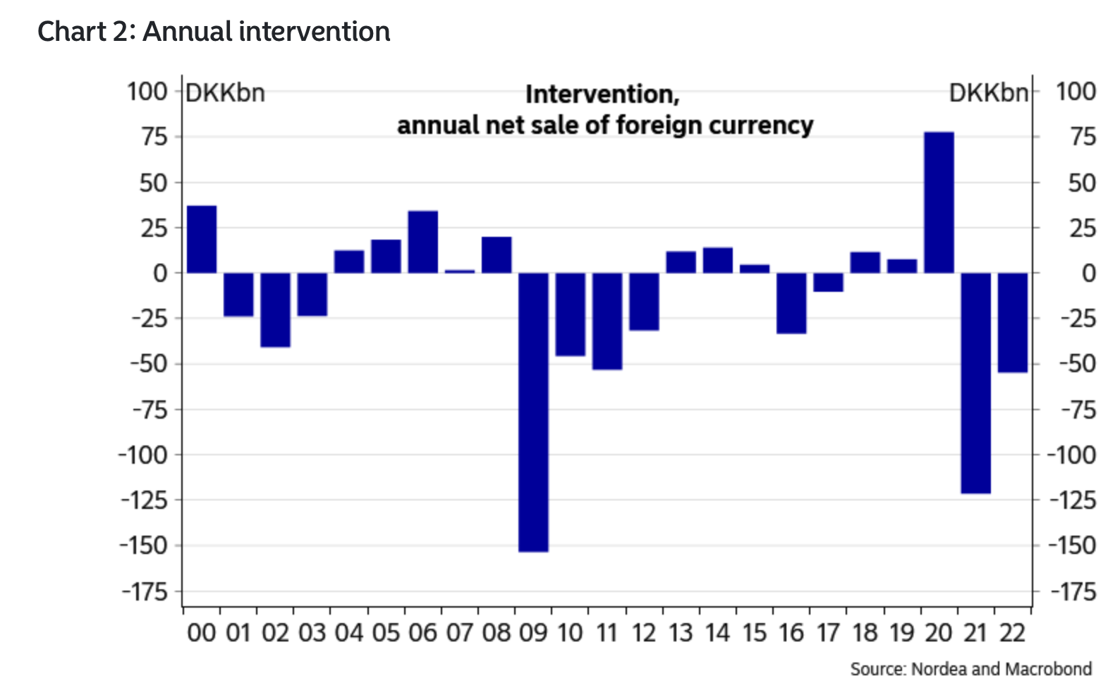 Tack för källa! Väldigt intressant! Man sålde alltså av 54,8 miljarder danska på att försvara kronan under 2022. Siffrorna bör ju vara ännu högre när man summerar 2023.