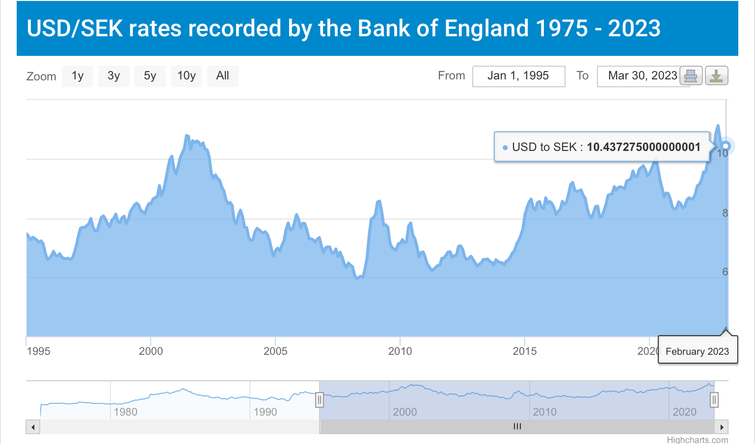 Personligen har jag svårt att se denna konstanta försvagningen sen vi släppte växelkursen fri. Mer att kronan försvagas ihop med orolighet i värden (2001, 2009, 2020, 2022). Samt när riksbanken inte följer övriga riksbanker så får vi låg växelkurs (2011-2014).