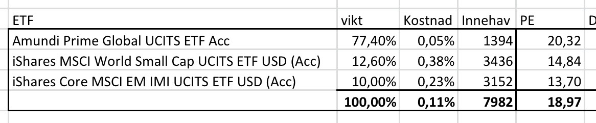 F50A innehåller bara world och jag la till world small cap och emerging markets IMI (ink. småbolag)
