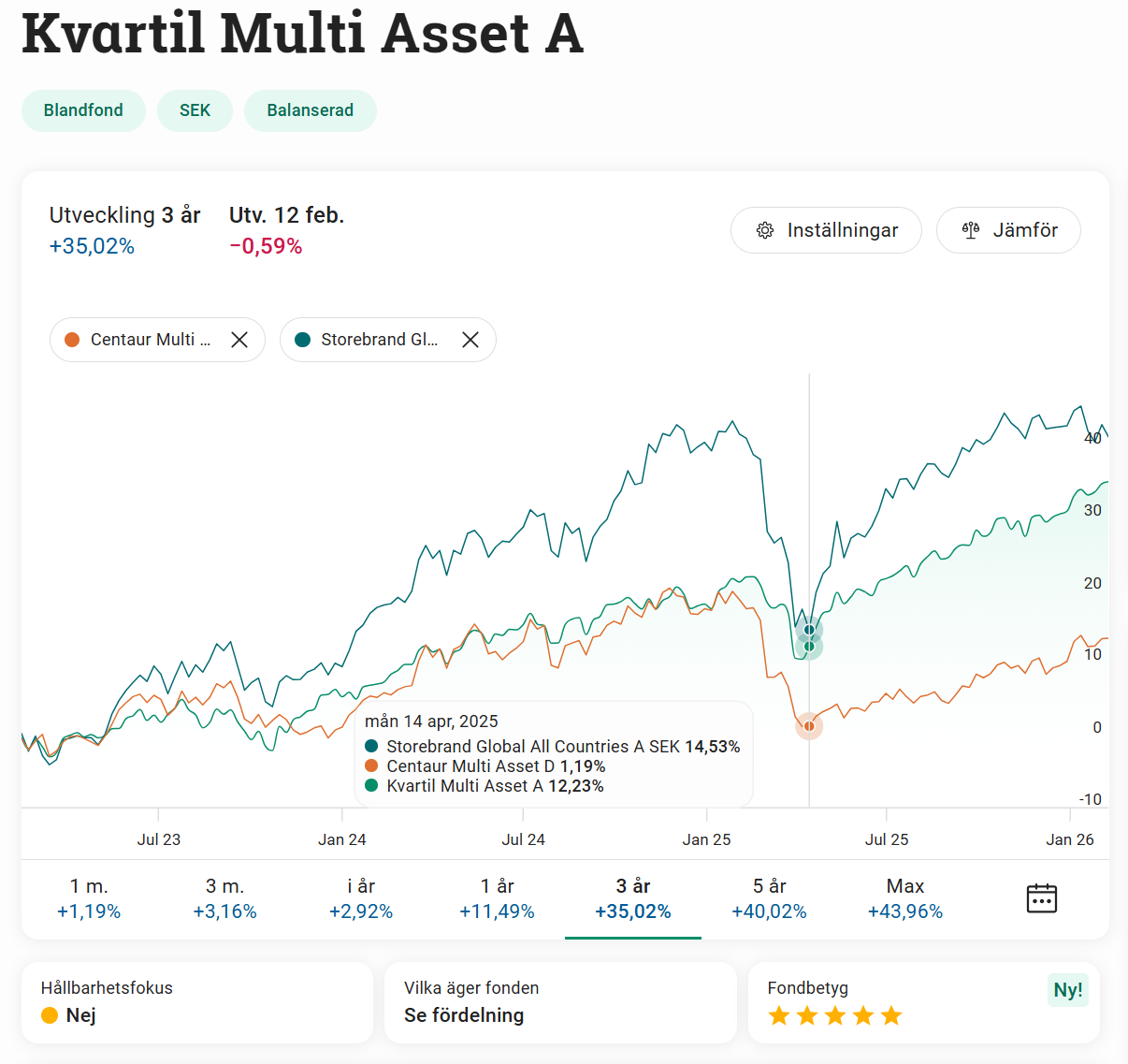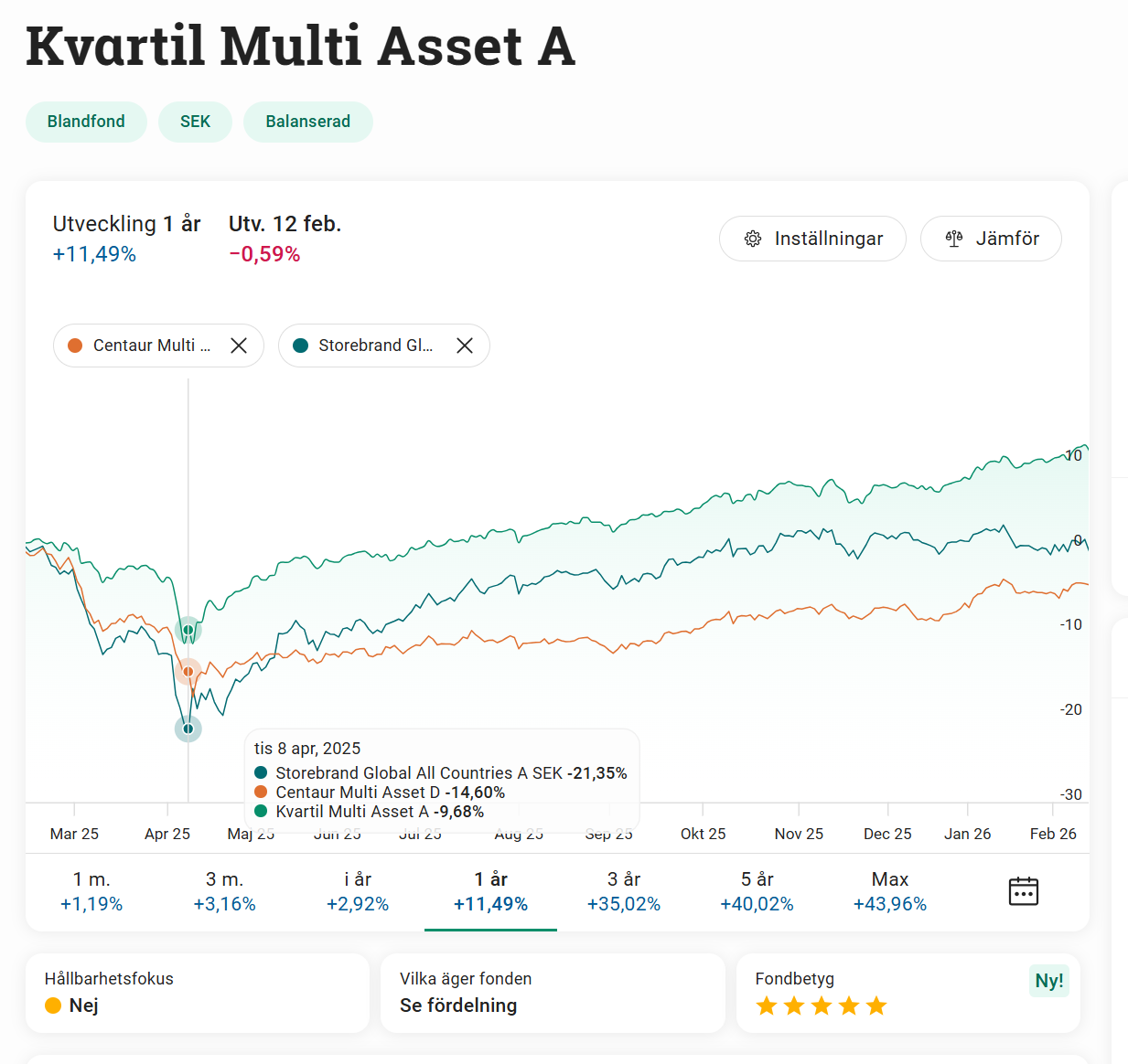 Utav de 2 ni hänvisar till ovan verkar ju Kvartils fond vara mest “allväder” vid en snabb jämförelse (1 och 3 års historik):