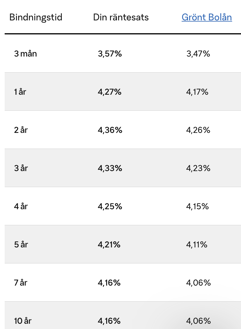 Är i samma situation, vårt lån går ut nu i januari. Har 0,93 % nu som vi band på för det va billigare än den rörliga just då. Nu kommer den gå upp till ca 3,5 % dvs 4 ggr så mycket… svider lite men inte så mycket att göra åt det.