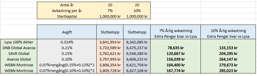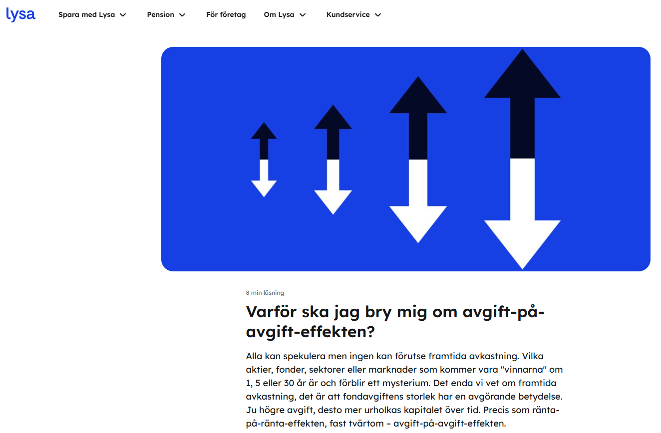 Men att du helt ignorerar ränta på ränta effekten av Lysas förhöjda avgift är för mig otroligt. Räkna på den på under 20 år.