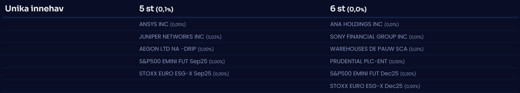 För närvarande finns det endast detaljerade innehav för fonder som rapporterar till Finansinspektionen.