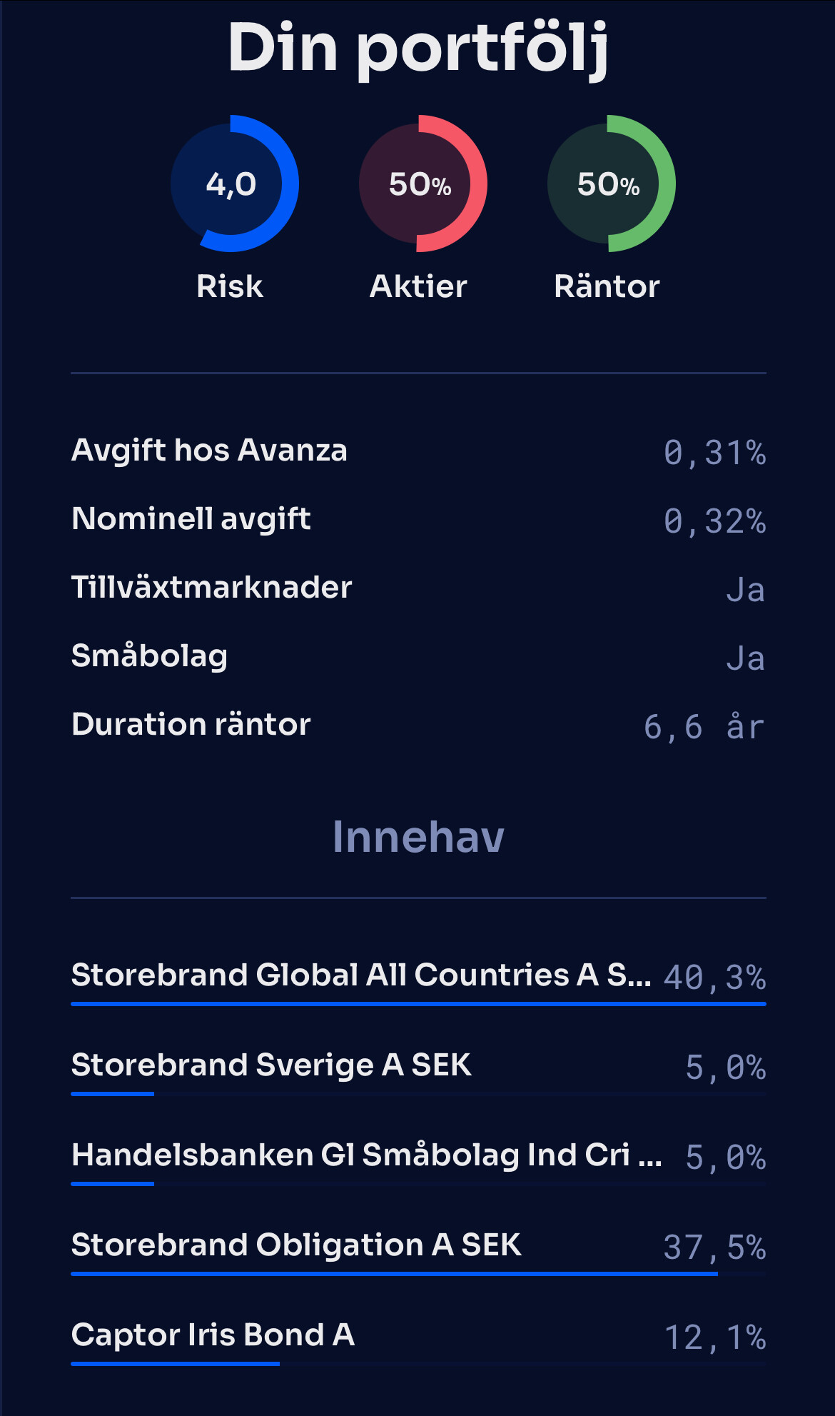 Själv hade jag valt något i stil med detta som ger lägre avgift och bredare exponering: