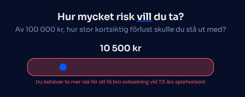 Användaren svara endast på riskvilja