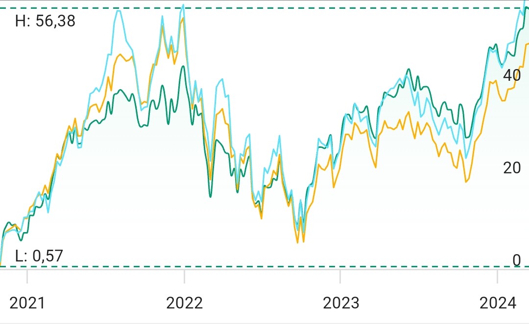 Se bilden nedan under en kort tid. De följer varandra väl men de går lite olika bra i perioder.
