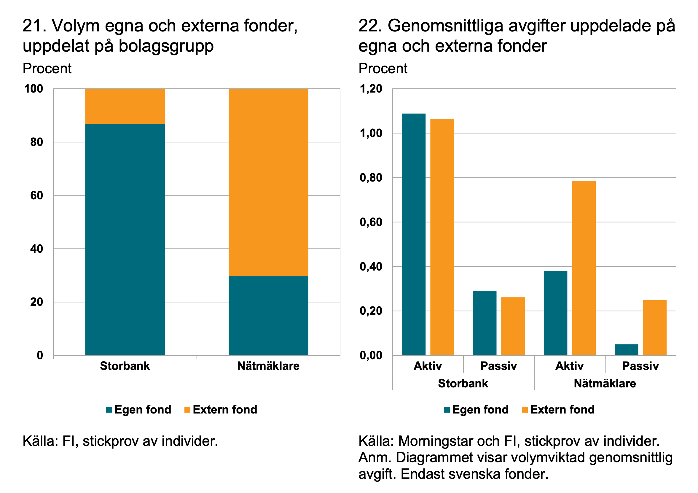 Köper du en fond hos storbank så är det ofta storbankens egna fondbolag och banken själv. I praktiken samma företagsparaply är både fondbolag och säljare.