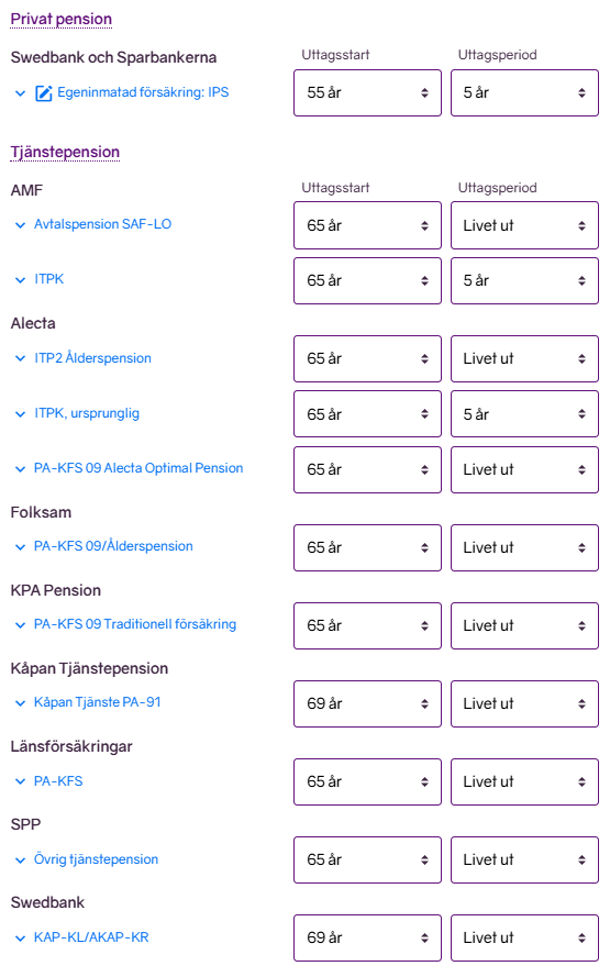 Känns även som uttagen ut tjänstepenstion blir krångligt, jag har inte haft så många arbetsgivare men dom byter ju bolag då och då så jag har ca 10 olika bolag och inte alla man FÅR ta ut allt mellan 55-65år som jag vill. .