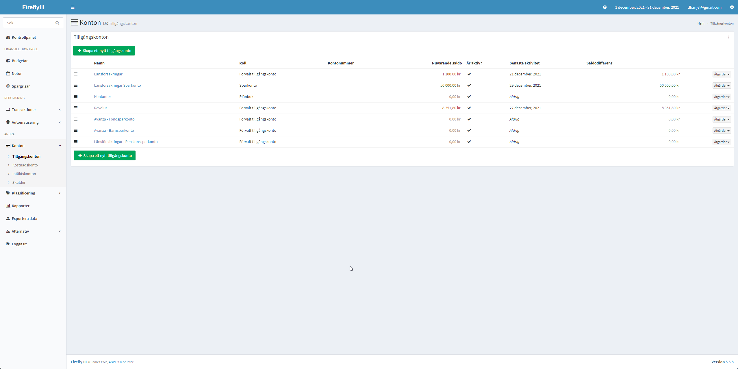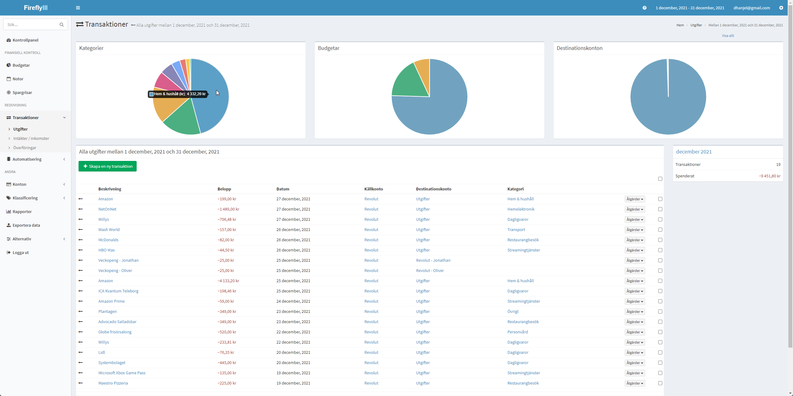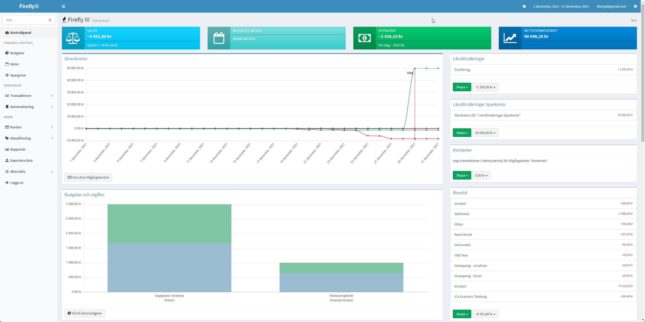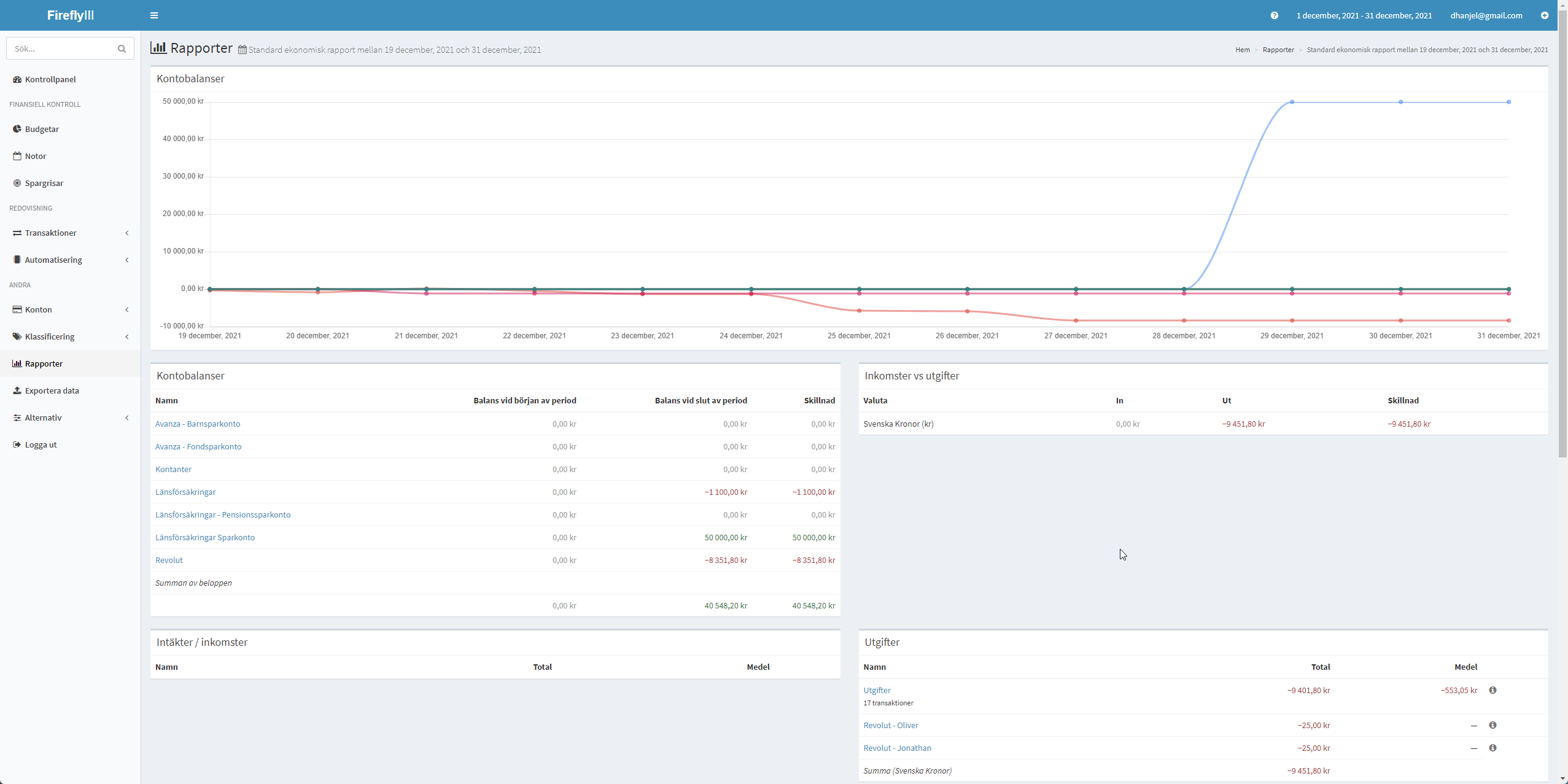Har bara lagt till lite utgifter hittils för december för att testa (och inga inkomster).