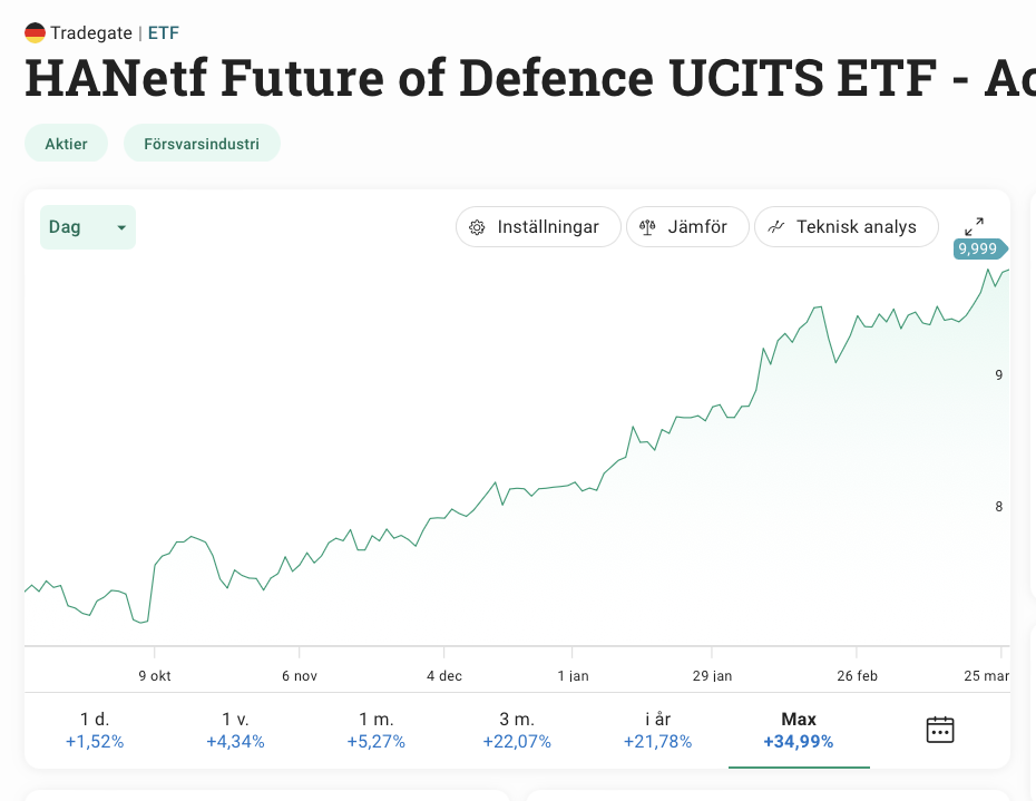 Försvarsindustri ETF i handelsvalutan SEK