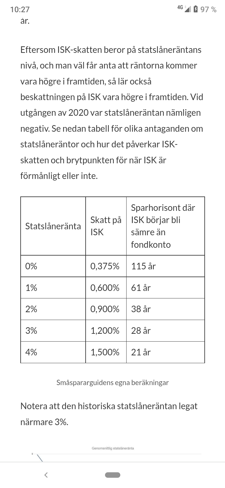 Kan inget om ISK då jag inte får ha det som utlandsvensk,men som jag fattar det är skatten beroende på statslåneräntan. Och det verkar som om den kan sticka iväg rejält i nära framtid.