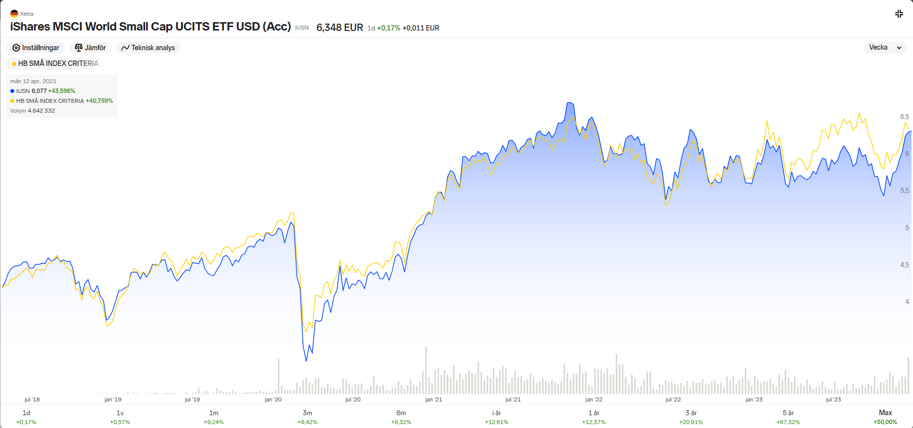 Jämförde HB globala småbolag med en etf som följer msci world small cap.