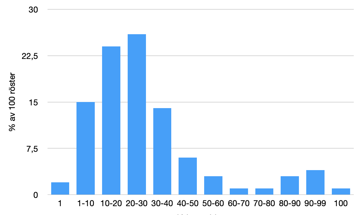 Så ~20% är mest poppis, precis vad populära sparroboten Lysa har också. Men finns inget rätt eller fel ![]()