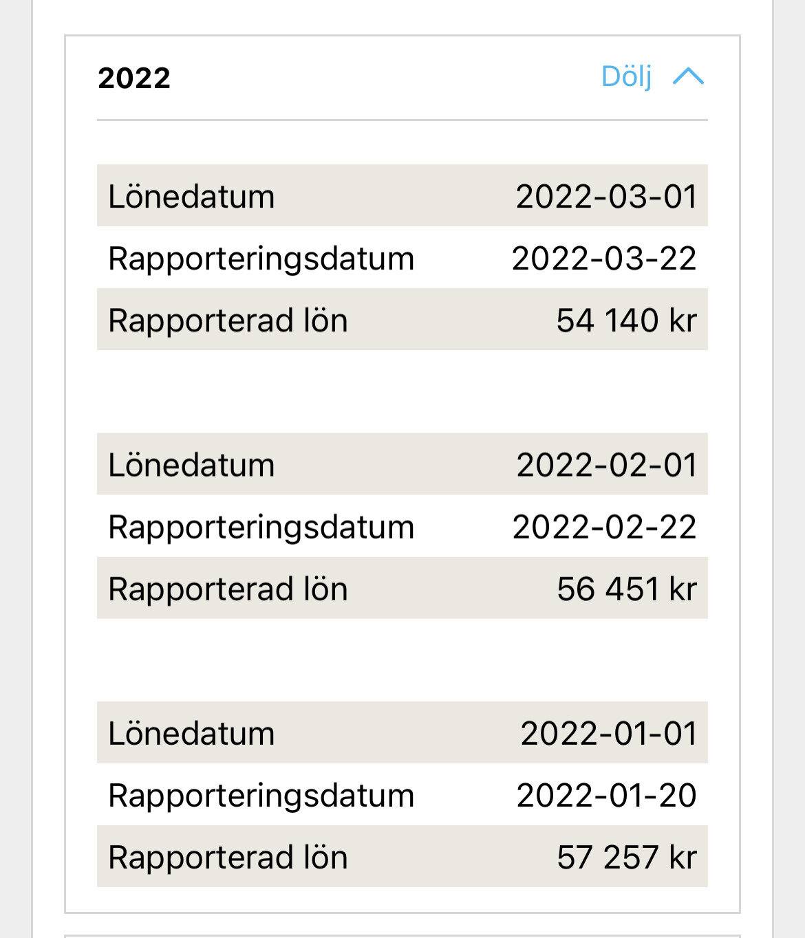 Vi har ITP1 TJP och min lön är 47 700Kr. På collectums hemsida finns en beräkning där det står att premien då är 2994Kr/mån. Jag kör sedan 50% trad i Alecta och 50% SPP. Dock så ser jag att inbetalda premier till SPP ligger på 1 640,31kr varje månad. Har loggat in på Alecta och Collectum men tyvärr är det ju supersvårt att hitta historik över insättningar, varför är inte denna data lättillgänglig?