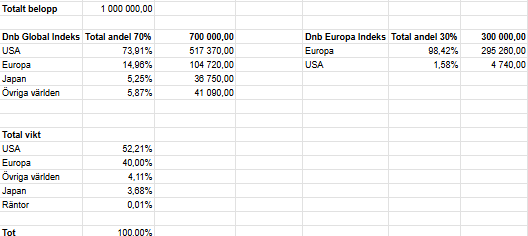 Fördelning 70% globalfond, 30% europafond.