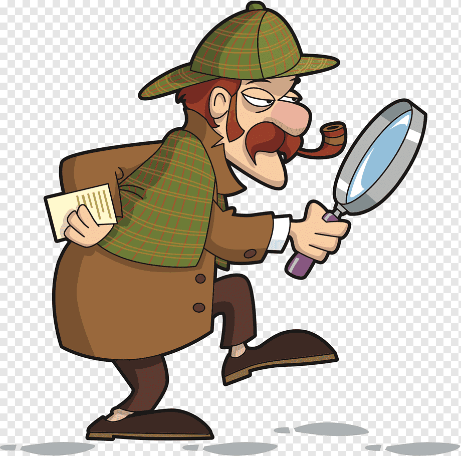 Med förstoringsglaset letar han sen även manuellt i mängderna av rum efter ett tappat glasspapper, en penna, någon gammal smörgås eller tidning? Har inte någon strukit med handen på den dammiga hyllan där borta? Stod inte den gröna boken till höger om den röda förut?