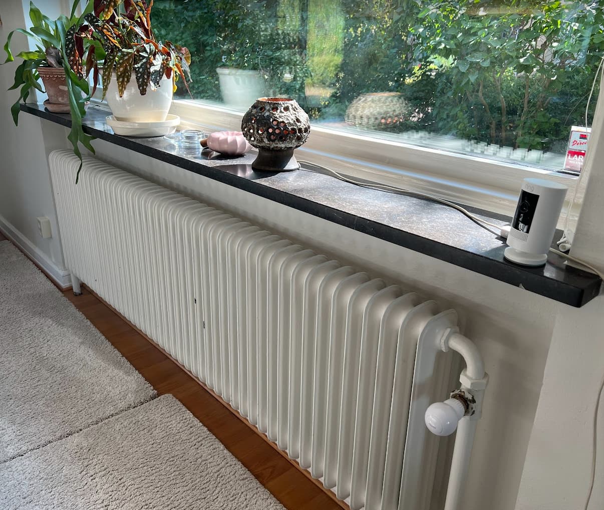Inred mörkt i rum med mycket sol så värmen absorberas ännu bättre.
