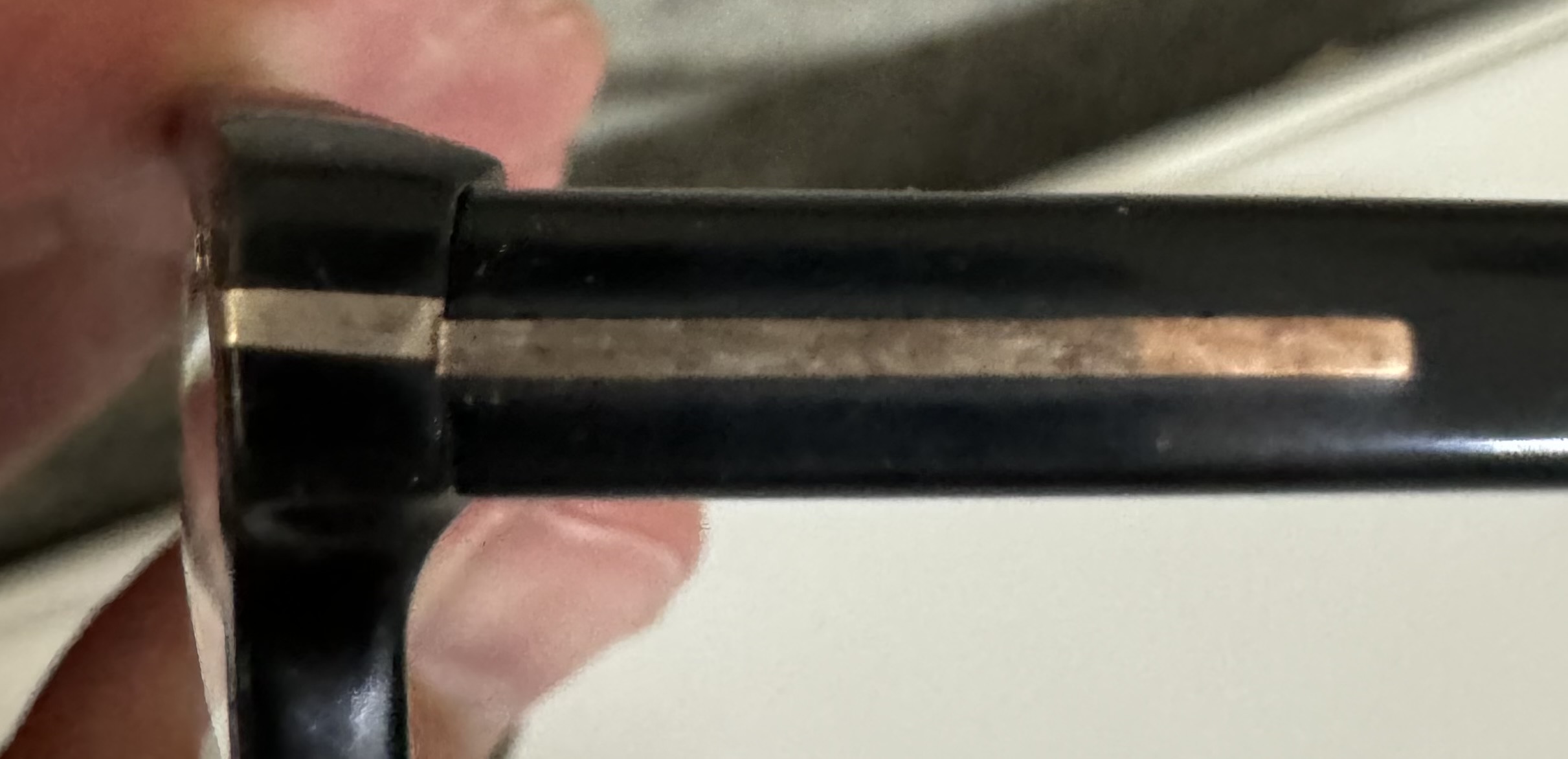 Det är nog det, tror i den prisklassen så betalar man mest för designermärket. Nu är jag konverterad av sonen, köpte mina JMM bågar begagnade för 5.200kr och sen köpte jag progressiva glas monterade för 4.600kr (zeiss) jämfört med de Tom Ford jag köpte av Synsam för 10.500kr för 1.5 år sen. Där de ser ut så här… notera att gångjärnet inte längre linjerar och metallen är permanent missfärgad (utöver att de är vitt gojsiga på skalmarna…)
