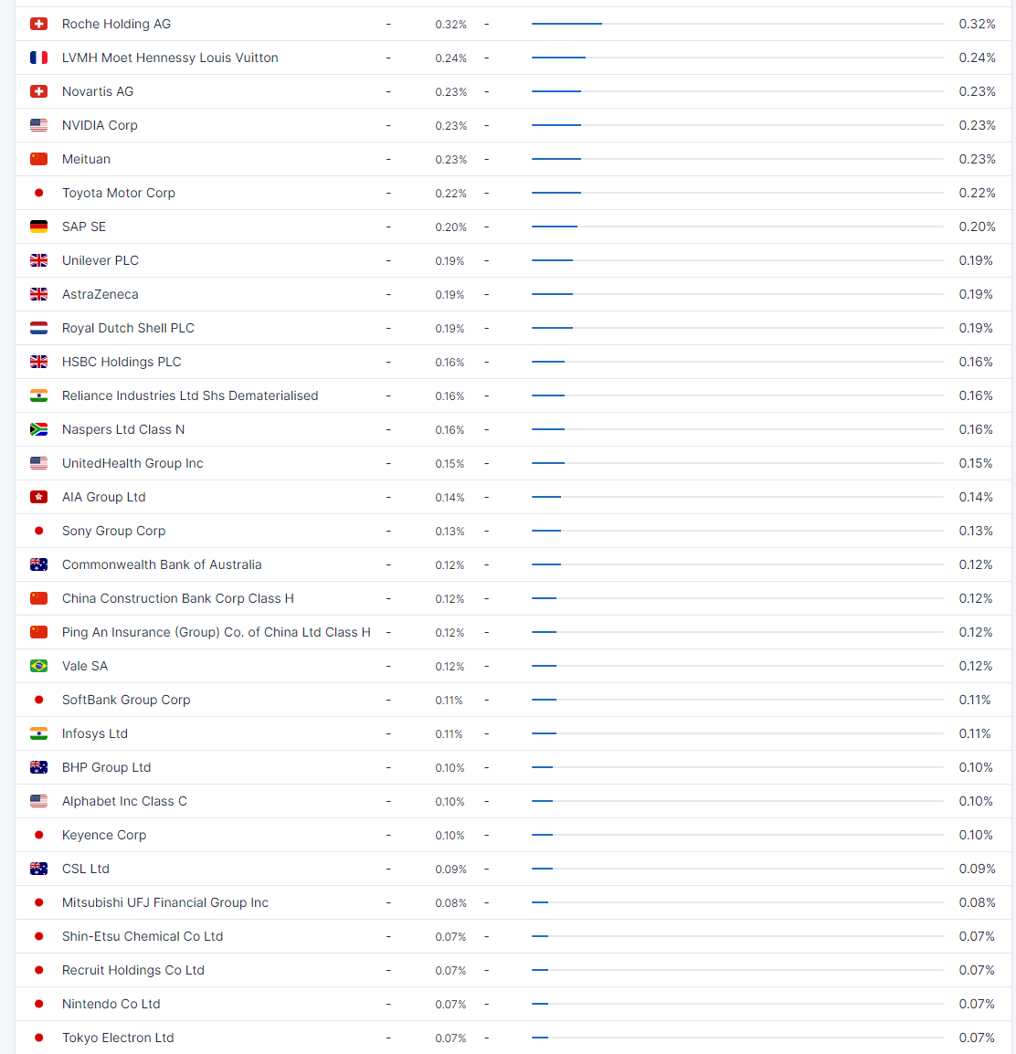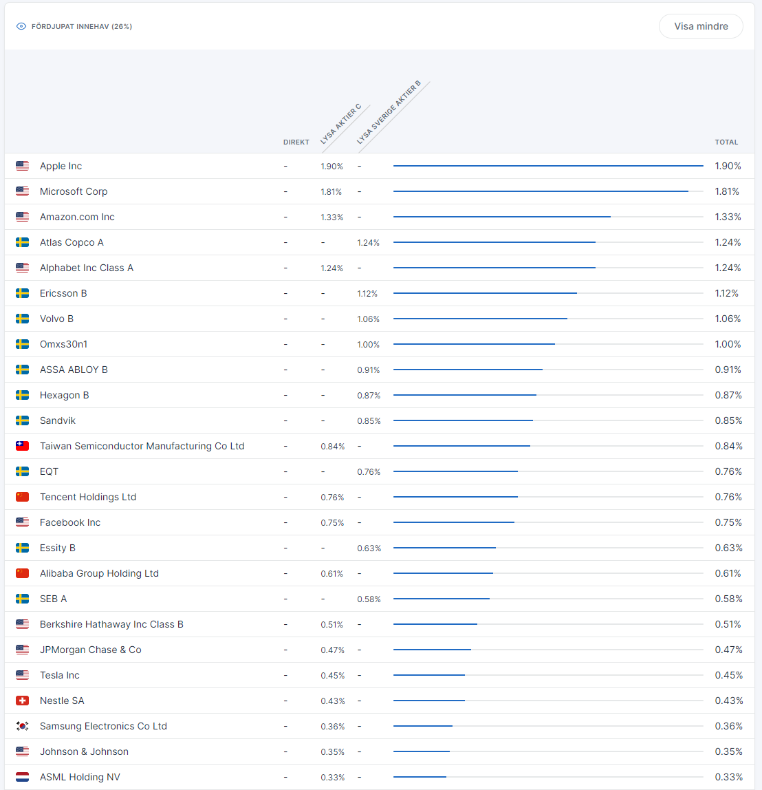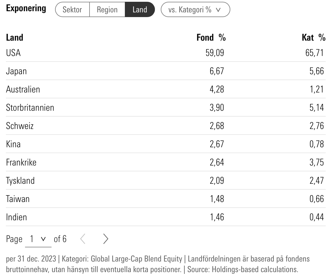 Hur ser fördelningen ut när man köper breda portföljen på lysa? Vet att 20% är Sverige men hur många % är USA? Hur många % är Kina, Portugal, Indonesien, Danmark, Venezuela osv?