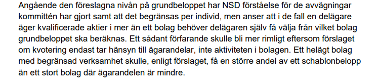 Det är ju ett grundavdrag på 8IBB för varje delägare. Det innebär en kraftig sänkning av utdelningsutrymmet för alla som är 2,3,4 eller fler delägare.